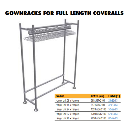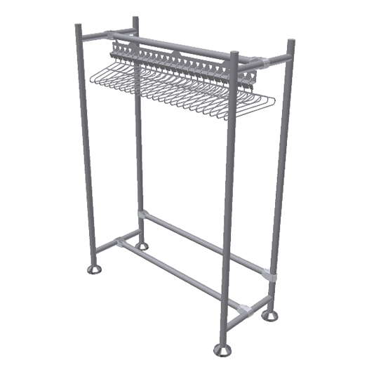 מתלה קולבים (רצפתי) לסרבלים, חלוקים במעבדה ומעילים המותאם במיוחד עבור חדר נקי באיכות גבוהה.