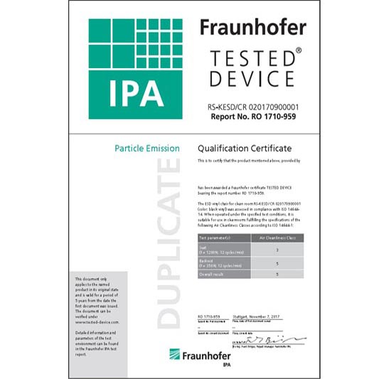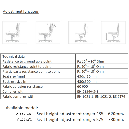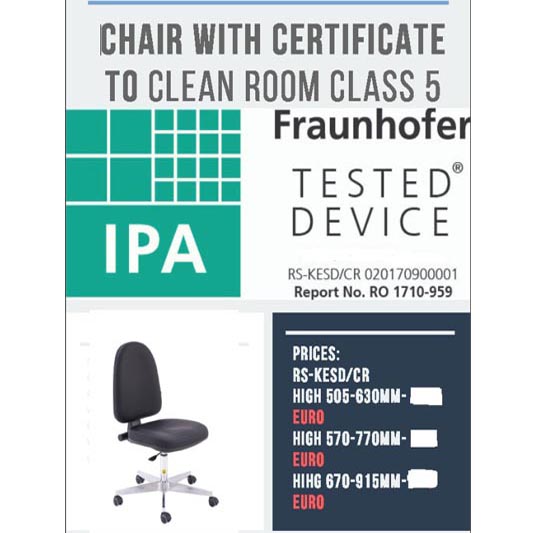 כסא ESD מכוסה ויניל (Vinyl) מוליך באיכות גבוהה (RG <106 Ω), מתאים לשימוש בחדרים נקיים.