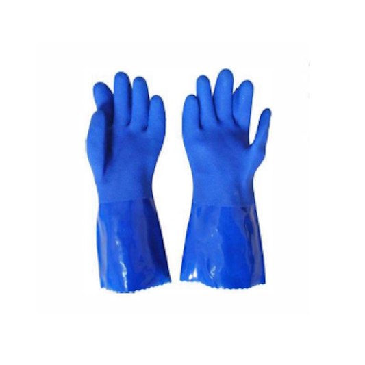 כפפות מגן מקצועיות להגנה מפני כימיקלים, עשויות PVC כחול איכותי ועמיד במיוחד, עם ציפוי מלא ובטנה פנימית לתמיכה מירבית. הכפפות מספקות עמידות גבוהה בפני שחיקה וכימיקלים, אטומות למים ומיועדות להגנה מכנית כללית בעבודה. משטח האחיזה בעל גימור מאט המספק אחיזה טובה ובטיחותית גם בתנאי עבודה מורכבים.