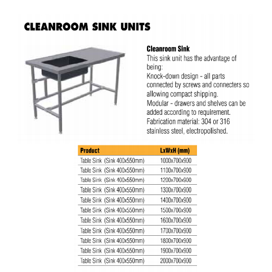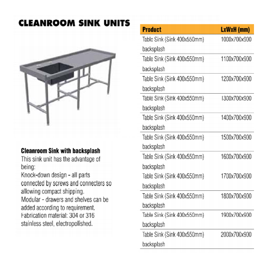 בית » ציוד ומכשור מעבדתי » שולחן כיור עם וללא דפנות