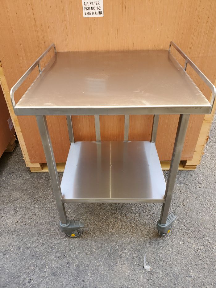 שולחן נירוסטה 316 בייצור מיוחד עם גלגלים אנטי סטטיים.